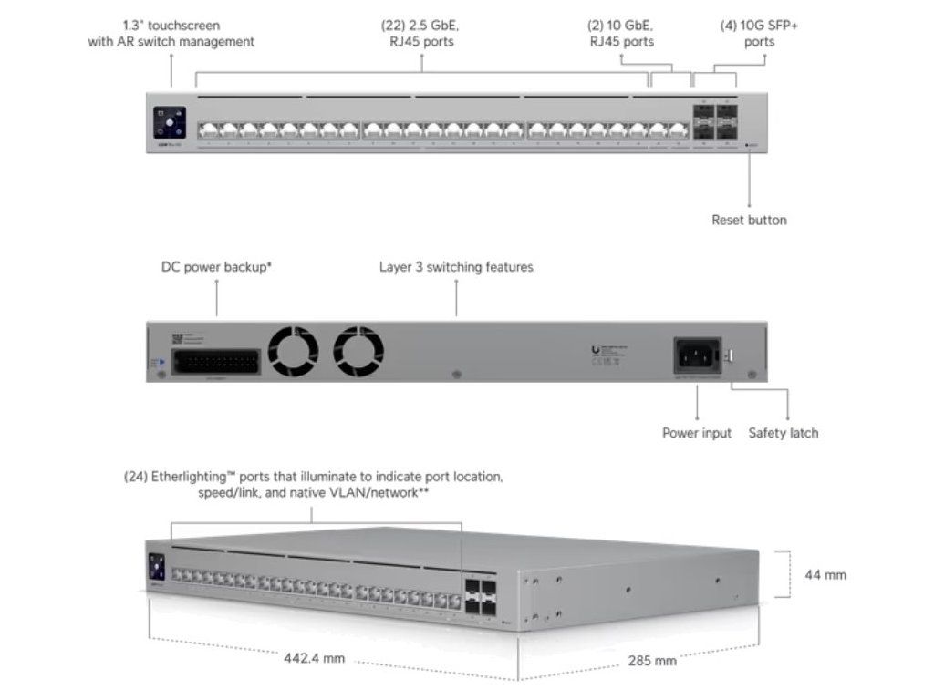 Vybudujte vaši síť s řadou Ubiquiti networks UniFi Switch. UniFi Switch Pro HD 24 je vysoce výkonný, multigigabitový switch známého výrobce Ubiquiti ze série UniFi, který navíc disponuje 1,3" dotykovým LCM displejem pro usnadnění ovládání. K dispozici je navíc také RPS DC vstup, který poskytuje redundantní napájení, pro případ výpadku primárního.