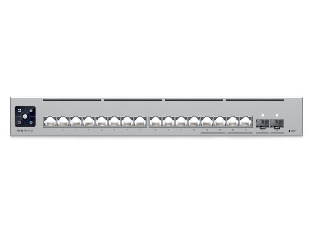Vybudujte vaší síť s řadou Ubiquiti networks UniFi Switch. UniFi Switch Pro Max 16 je vysoce výkonný, multigigabitový switch známého výrobce Ubiquiti ze série UniFi, který navíc disponuje 1,3" dotykovým LCM displejem pro usnadnění ovládání.