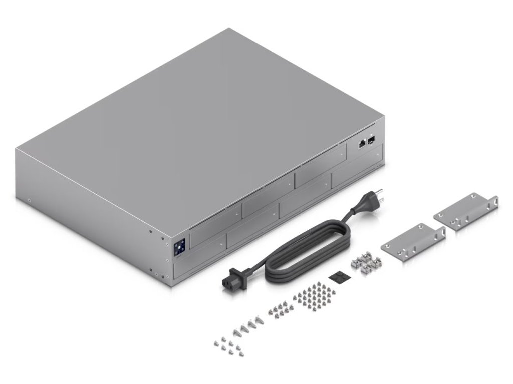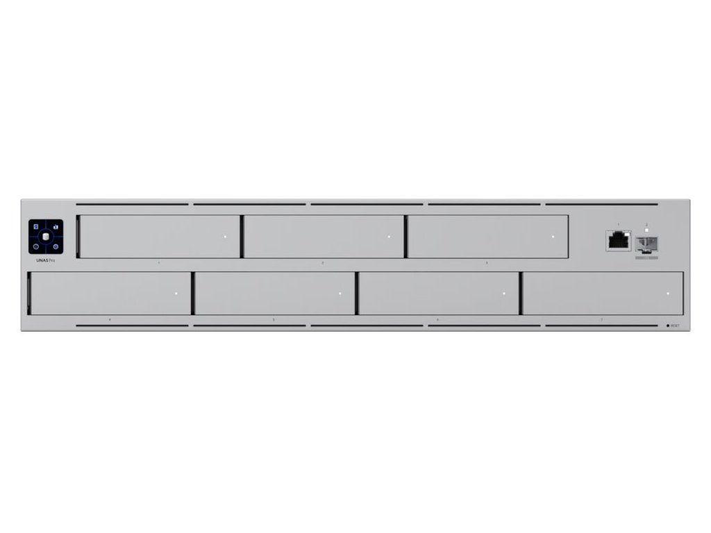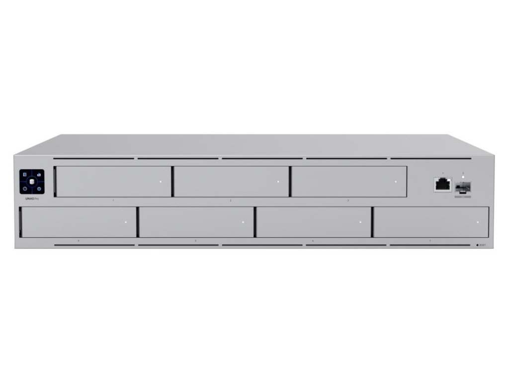 Ubiquiti UniFi UNAS ProNAS pro montáž do 2U racku disponující 7× 2,5/3,5" pozicemi pro disk, jedním GbE RJ-45 portem a jedním 10G SFP+ portem pro uplink. Vhodný pro ukládání a sdílení velkých souborů.