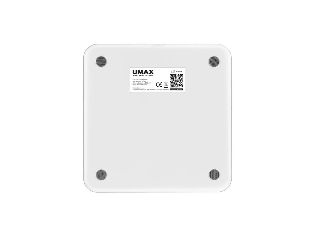 UMAX Smart Scale US20HRCChytrá váha nové generace, která využívá pokročilou technologii pro sledování hmotnosti a dalších tělesných parametrů. Smart Scale analyzuje tělesné složení až 15 různých parametrů jako hmotnost, tělesný tuk, objem vody, BMI, metabolický věk nebo BMR a měří tyto parametry prostřednictvím bioelektrické impedanční analýzy (BIA). Váha je propojena bezdrátově pomocí Bluetooth 4.0 nebo Wi-Fi s mobilní aplikací U-Scale v češtině, což umožňuje kontrolovat naměřená data, která potřebujete k převzetí kontroly nad vaší kondicí. Díky vestavěné dobíjecí baterii s kapacitou 400 mAh odpadá nutnost nakupování baterií a jejich výměna. Stačí váhu připojit skrze konektor USB typu C a baterii jednoduše dobít.