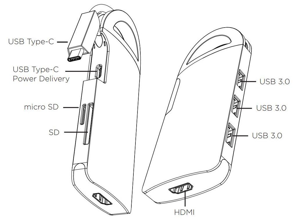 UMAX U-Connect Multiport H7Dokovací stanice nabízející velké množství praktických portů. Připojení k počítači je realizováno skrze USB typ C kabel. Stanice taktéž nabízí USB-C port s Power Delivery až 60 W, který je určen pro napájení připojeného notebooku či tabletu pomocí vašeho originálního síťového adaptéru. Rovněž podporuje nabíjení připojených USB mobilních zařízení. K dokovací stanici lze připojit monitor skrze rozhraní HDMI s maximálním rozlišením až 4K Ultra HD 3840 x 2160 obrazových bodů. Pro připojení periférií jsou přítomny tři USB 3.0 porty. Dále stanice disponuje čtečkou SD a microSD karet.