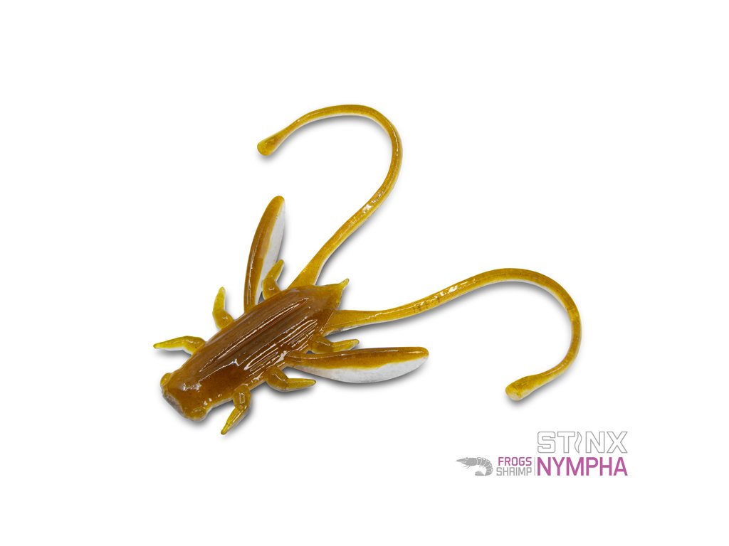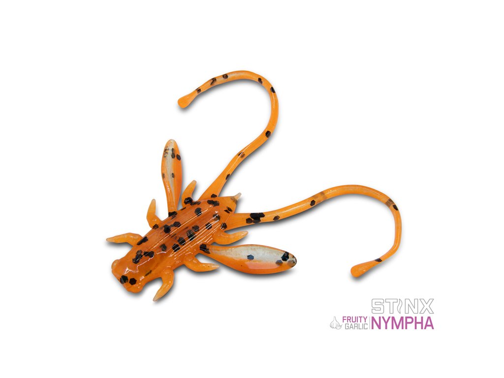 Ultralehká přívlač si získává stále větší popularitu, což nezůstalo bez odezvy u týmu značky Delphin. Výsledkem je umělá nástraha Delphin B! Stinx NYMPHA. Jedinečný tvar nástrahy navržený našimi designéry představuje originální kombinaci vodního hmyzu a korýše, díky čemuž ve vodě působí mimořádně realisticky a přirozeně. Detailně propracované tělo spolu s dlouhými nožičkami vytváří neodolatelný pohyb, kterému jen těžko odolají pstruzi, okouni, jelci, ale i další druhy, jako například bílé ryby. Nástraha je vyrobena z kvalitního měkkého materiálu a obsahuje sůl, což zvyšuje její atraktivitu a zajišťuje, že na ni ryby opakovaně a s chutí útočí. Pro ještě větší účinnost je dostupná ve třech osvědčených příchutích – kreveta, česnek a sýr. Nástrahy jsou navíc uloženy v praktické nádobě s tekutým atraktorem, do kterého lze uložit použitou nástrahu, a tak opětovně zvýšit její atraktivitu. Technické parametry: Hmotnost nástrahy: 0,90 gDoplňkové parametry