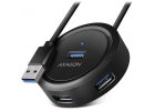 AXAGON HUE-C1A; Kompaktní cestovní rozbočovač připojí k počítači až čtyři USB zařízení současně . Velkou výhodou je možnost externího napájení hubu z jakékoliv nabíječky...