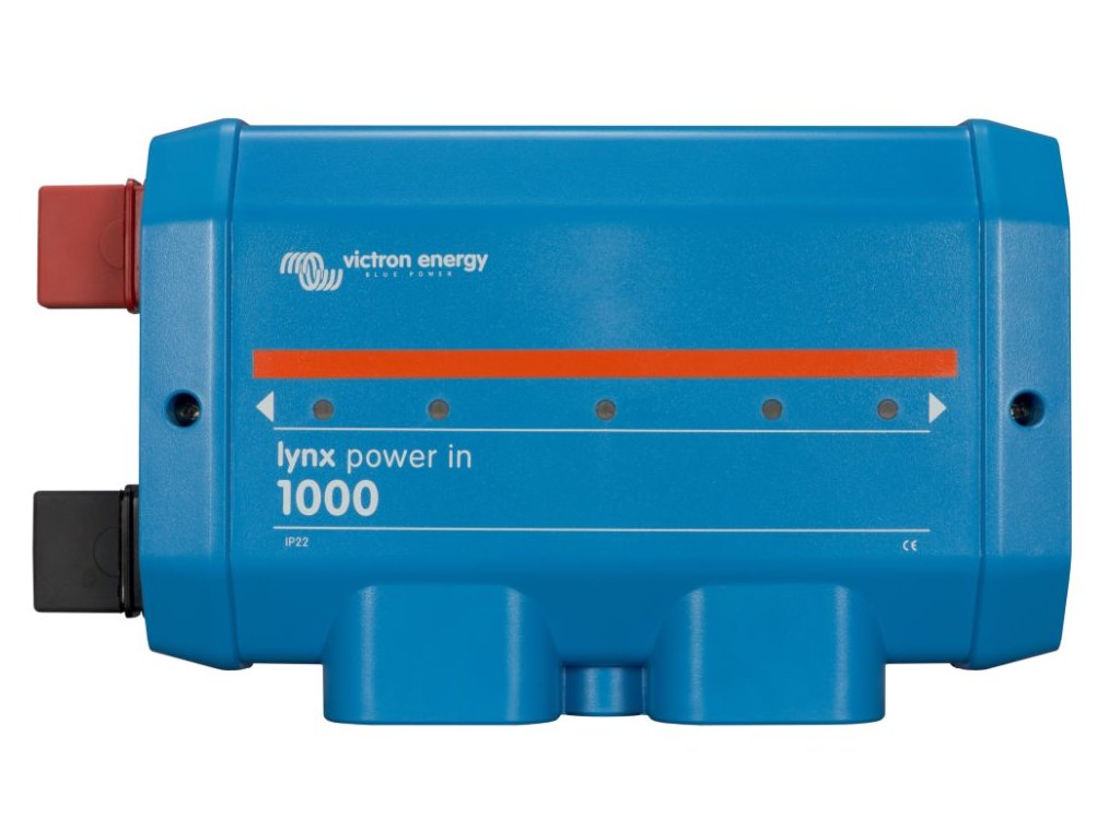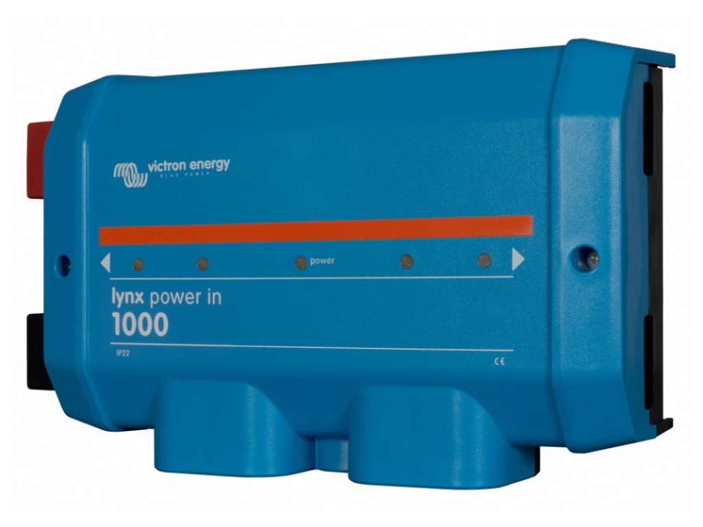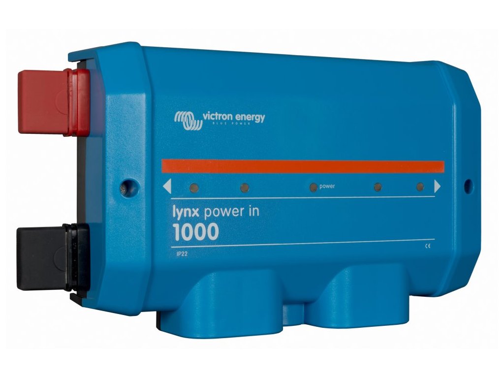 Modul Lynx Power In obsahuje zápornou a kladnou přípojnici se šrouby M8, které slouží k připojení kabelů baterií. Mohou být použity kabely až do průměru 22 mm skrz spodní vstupy a bez omezení přes obě boční připojení.