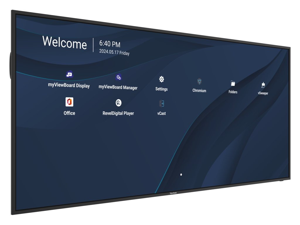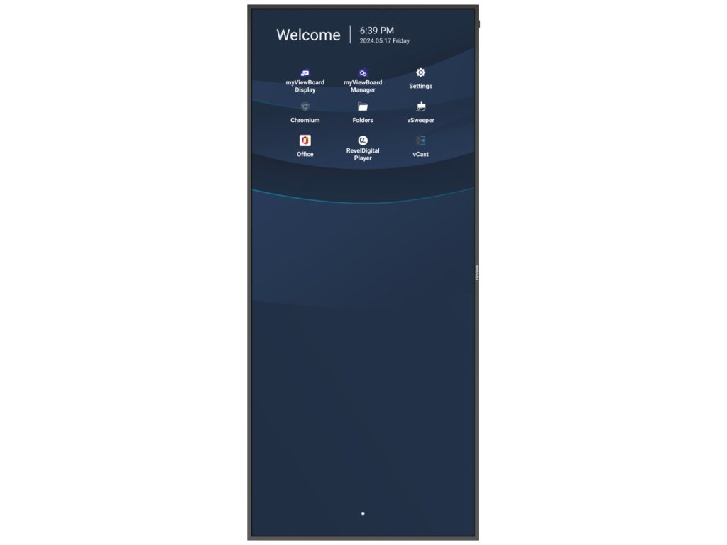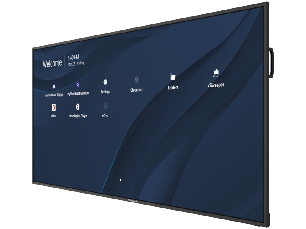 ViewSonic CDE105UWLED displej s úhlopříčkou 105", vhodný pro výuku či prezentace, disponuje WUHD rozlišením 5120 × 2160 bodů s poměrem stran 21 : 9. Displej nabízí svítivost 500 cd/m2, rychlost odezvy 14 ms a kontrastní poměr 5000 : 1. Potěší také široké pozorovací úhly 178° horizontálně i vertikálně. Použitý operační systém Android 13 umožňuje mimo jiné přímé přehrávání videa, prohlížení fotografií či poslech hudby z přítomných USB portů či z interního úložiště o velikosti 128 GB. O plynulý chod zařízení se stará osmijádrový procesor doplněný 8 GB operační paměti. Samozřejmostí pak je bezdrátové zrcadlení obrazovky z počítače či notebooku. K dispozici je také port USB-C, který kromě vysokorychlostního přenosu videa a dat umožňuje napájení připojených zařízení až do 100 W. Kromě toho jsou přítomny stereo reproduktory se subwooferem s celkovým výkonem 60 W a soustava 8 mikrofonů s funkcí potlačení šumu. Díky konstrukci je panel schopný provozu 24 hodin denně, 7 dní v týdnu.