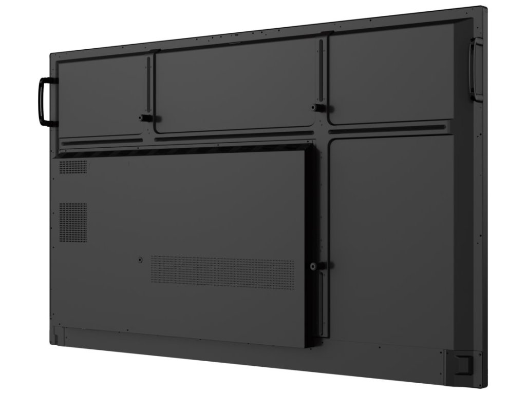 Rozhraní: 2× USB 2.0, 4× USB 3.0, 1× USB-C, 2× USB-B pro dotykové ovládání, 3× HDMI vstup, 1× VGA vstup, 1× audio vstup, 1× audio výstup, 2× RJ-45, 1× RS-232, 1× OPS slot
