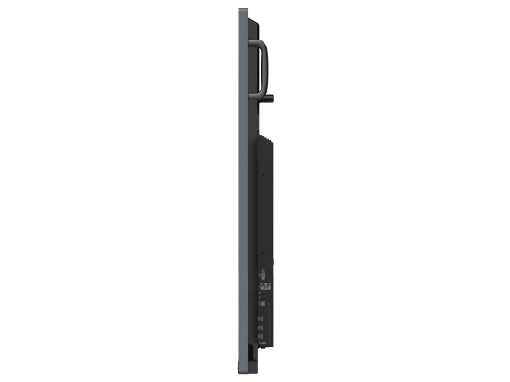 Rozhraní: 1× USB 2.0, 4× USB 3.0, 1× USB-C, 2× USB-B pro dotykové ovládání, 3× HDMI vstup, 1× HDMI výstup, 1× VGA vstup, 1× audio výstup, 1× sluchátkový výstup, 1× optický výstup zvuku (SPDIF), 2× RJ-45, 1× RS-232, 1× OPS slot, 1× slot pro volitelný Wi-Fi modul