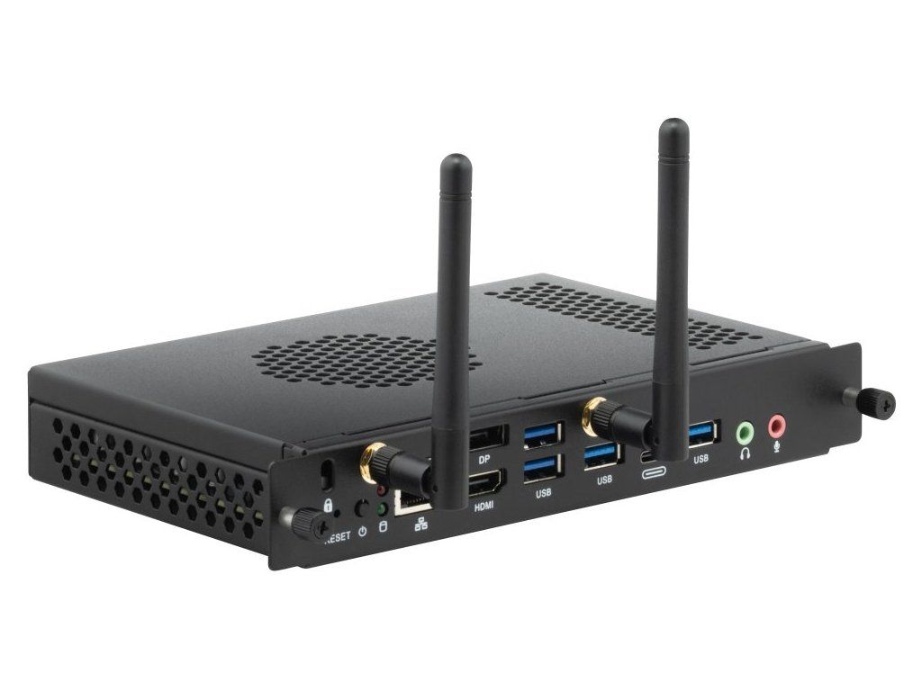ViewSonic VPC35-W53-G1Zásuvný počítač ve formátu OPS (Slot-in-PC) pro velkoformátové displeje ViewSonic ViewBoard. Základem počítače je 12jádrový procesor Intel Core i5-1240P, pracující na frekvenci 1,7 GHz, doplněný o 16 GB operační paměti. Obrazová data má na starost integrovaná grafická karta Intel Iris Xe G7. Pro uživatelská data je k dispozici SSD disk s kapacitou 256 GB. Samozřejmostí je bezdrátové připojení Wi-Fi a Bluetooth. Počítač je dodáván s předinstalovaným operačním systémem Windows 11 Pro.