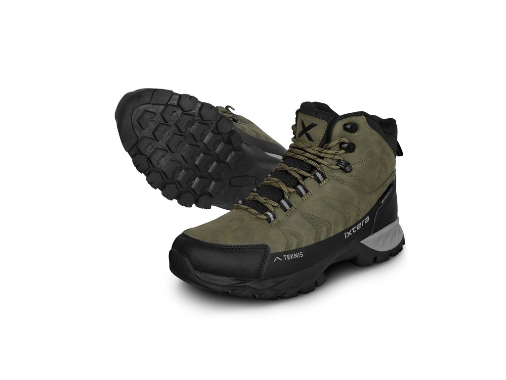 Značka IXTERA je zúročením našich mnohaletých zkušeností s vývojem a testováním produktů určených pro pobyt v přírodě. Drtivá většina našich produktů využívá nejmodernější technologie, procesy a funkční materiály tak, abychom vám zaručili maximální komfort v jakýchkoli podmínkách, vždy a všude. Outdoorové boty TEKNIS byly navrženy s cílem poskytnout pohodlí v každém kroku, a to i během delších túr či procházek v přírodě. Jejich velkou předností je nepromokavost, kterou zajišťuje speciální membránová vrstva umístěná uvnitř boty. Díky tomuto řešení se nemusíte obávat mokré trávy, náhlé změny počasí ani bláta. Vaše nohy zůstanou spolehlivě v suchu za všech okolností. Vrchní část boty je vyrobena z kombinace odolných syntetických materiálů a textilie, které poskytují chodidlu potřebnou oporu a zároveň přispívají k dlouhé životnosti obuvi. Vyšší střih bot pomáhá chránit kotník před podvrknutím, zatímco vyztužená špička a pata zvyšují odolnost boty při používání v náročnějším terénu. O stabilitu při chůzi se stará pevná podrážka z odolné, ale lehké gumy, která je pro ještě vyšší komfort v zadní části vybavena mezipodešví z EVA pěny, která tlumí nárazy. Propracovaný vzor podrážky poskytuje vynikající přilnavost na štěrku, mokrých kamenech či blátě a minimalizuje riziko uklouznutí. Decentní zelený design doplňují praktické prvky, jako například poutko na patě pro snadnější obouvání.Doplňkové parametry