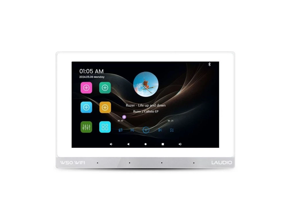 Laudio W50 WiFi je inovativní hudební přehrávač určený k montáži do zdi (podomítkově). Zařízení představuje kompletní centrum zábavy, které v sobě kombinuje funkce audio přehrávače, zesilovače a ovládacího panelu multiroom systému. Díky 7palcovému dotykovému displeji IPS s rozlišením 1024 × 600 px je používání vestavěných funkcí i aplikací mimořádně pohodlné a intuitivní.