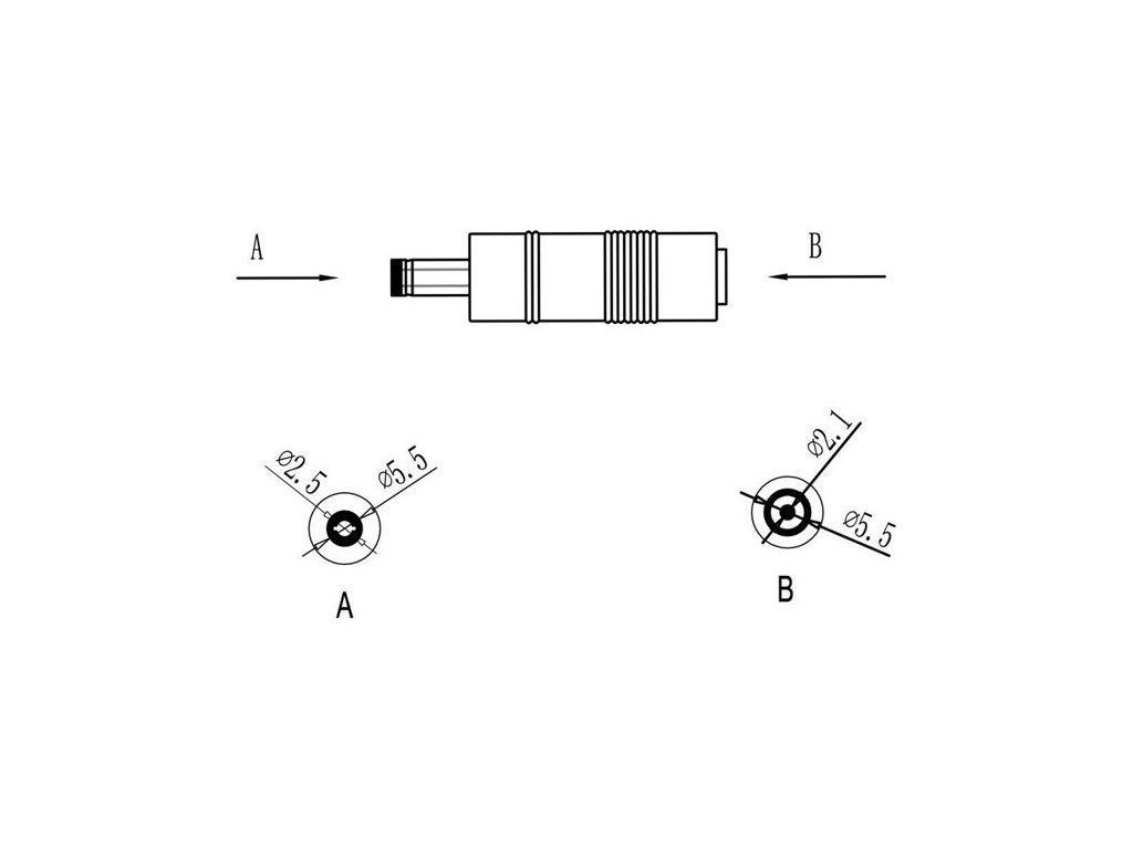 WaveRF 2,1 x 5,5 mm (F) na 2,5 x 5,5 mm (M)Napájecí redukce z konektoru 2,1 x 5,5 mm (F) na 2,5 x 5,5 mm (M). Maximální zátěžový proud pro redukci je 5,4 A.