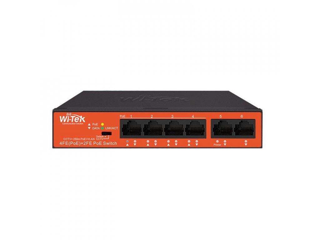 100 Mbps switch 6x RJ45 - 4 porty PoE/ Extend mode. Funkce Watchdog pro kontrolu a restart připojených zařízení