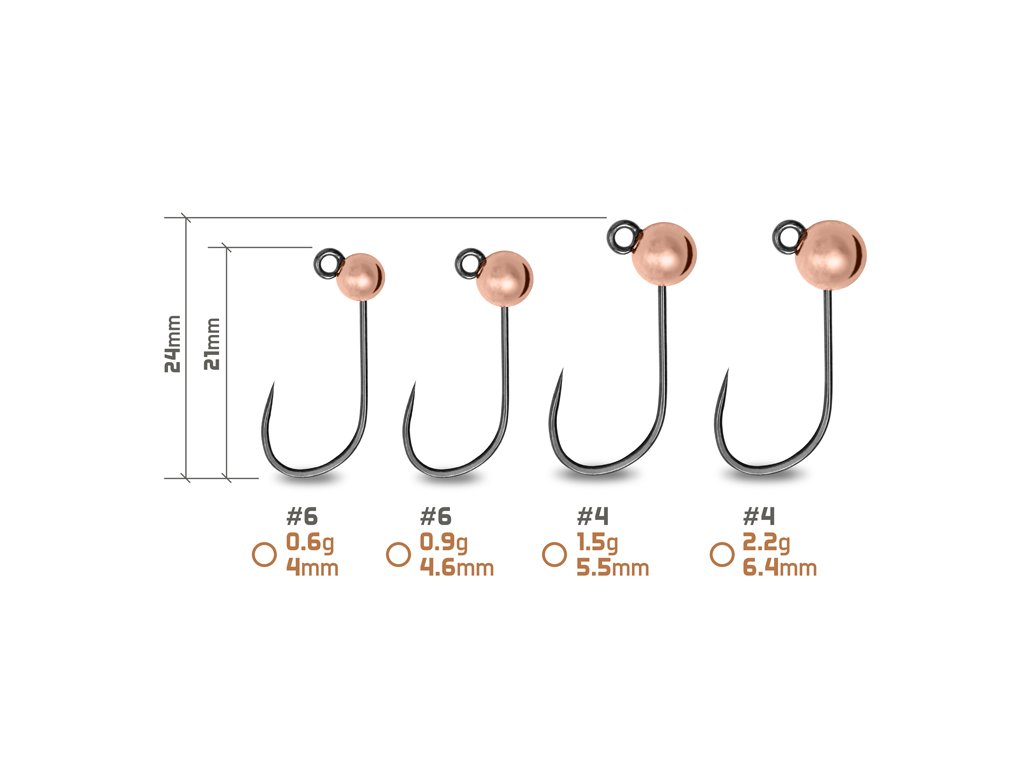 Wolframový jig představuje ideální řešení pro prezentaci lehkých a ultralehkých měkkých nástrah při lovu menších dravců, zejména pstruhů. Hlavním benefitem wolframu je jeho vysoká hustota, jelikož tento kov je přibližně o dvě třetiny těžší než olovo. V praxi to znamená, že při zachování stejné hmotnosti je hlavička výrazně menší a nenápadnější. Menší objem klade nižší odpor vzduchu i vodě, což zajišťuje delší hody a podstatně rychlejší propad nástrahy ke dnu. Tvrdost materiálu navíc zajišťuje špičkový přenos informací o každém kontaktu se dnem či opatrném záběru přímo do špičky vašeho prutu. Wolframové hlavičky jsou osazeny extra ostrými a pevnými háčky bez protihrotu, které jsou maximálně šetrné k rybě a jednoduše se vybírají. Proto jsou vhodné pro závodní rybolov jakými jsou například Trout Area závody. Speciální tvar háčku zaručuje okamžité proniknutí do rybí tlamy a úlovek spolehlivě udrží během zdolávání. Praktickým detailem je velké očko, které usnadňuje a zrychluje navazování v jakýchkoli podmínkách. Barevné varianty pokrývají většinu scénářů, se kterými se u vody setkáte. Výrazná fluo žlutá a fluo oranžová barva je magnetem zejména na čerstvě nasazené ryby, které je třeba co nejrychleji zaujmout a vyvolat agresivní útok. Zlatá a stříbrná reprezentují ověřenou klasiku, která funguje skoro vždy a všude a díky odleskům exceluje především během slunečného počasí. Pro lov opatrných divokých ryb v čistých vodách je ideálním řešením měděná barva, která působí v prostředí velmi přirozeně. V naší nabídce naleznete různé průměry hlaviček, ze kterých si vyberete tu správnou možnost pro danou hloubku revíru a proudivost vody. Různé velikosti háčku umožňují nastražování různých druhů a velikostí umělých nástrah.Doplňkové parametry