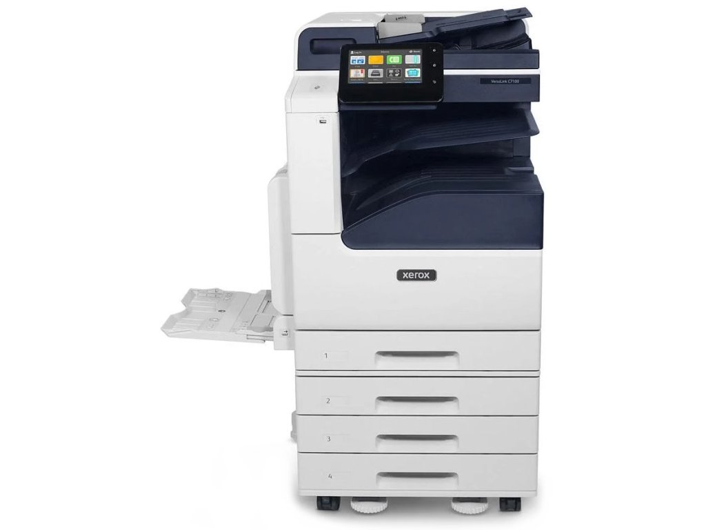 Xerox VersaLink C7101V_TMultifunkční barevná laserová tiskárna formátu A3 nabízející funkce tisku, skeneru a kopírky. Rozlišení tisku je až 1200 x 2400 dpi a rozlišení skeneru až 600 x 600 dpi. Rychlost tisku činí až 30 stran za minutu ve formátu A4 a až 17 stran za minutu ve formátu A3. Je vybavena manuálním zásobníkem na 100 listů a vstupními zásobníky na dalších 3040 listů (tandemový podavač). Ovládání tiskárny je velmi snadné díky 7" dotykovému displeji. Samozřejmostí je automatický duplexní tisk a automatický podavač dokumentů s kapacitou 130 listů. Tiskárnu můžete jednoduše připojit pomocí USB nebo ethernetového LAN portu a pro rychlý tisk z médií je připraven také USB host port a podpora NFC.