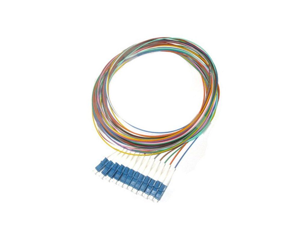 XtendLan FOTS-LC-9-1-9-12Jednostraně konektorovaná sada 12 optických kabelů (pigtail) s koncovkou LC, singlemode 9/125 µm, 1 m, sekundární ochrana průměr 0,9 mm, broušení konektoru UPC.