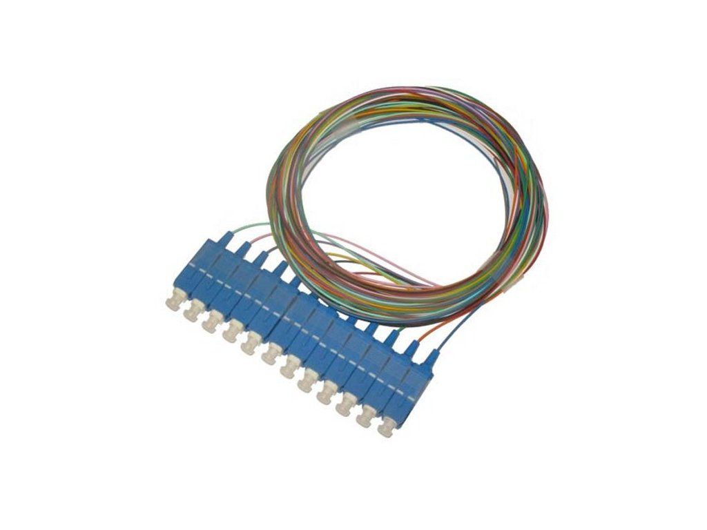 XtendLan FOTS-SC-9-1-9-12Jednostraně konektorovaná sada 12 optických kabelů (pigtail) s koncovkou SC, singlemode 9/125 µm, 1 m, sekundární ochrana průměr 0,9 mm, broušení konektoru UPC.