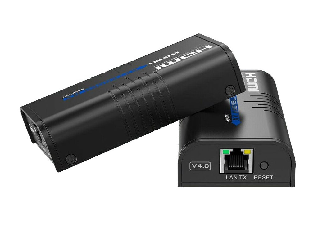 Pár jednotek vysílač a přijímač, které dovolují přenos HDMI videa po Ethernetových sítích. Typicky je vhodný pro digital signage aplikace a přenos komprimovaného HDMI signálu. Přenosová vzdálenost pro 1080 px při 60 Hz: Cat5 - 80 m, Cat5e - 100 m, Cat6 - 120 m.