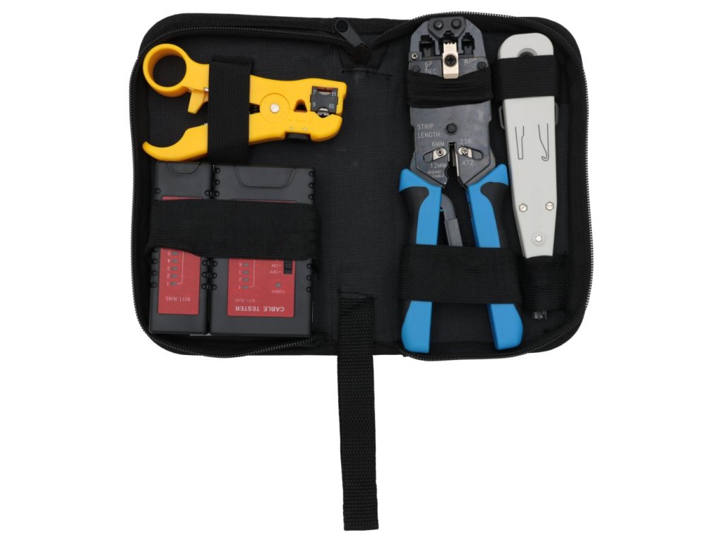 XtendLan Kit LAN II - Profi krimp kleště RJ-45-12-11-10, ořezávač/odizolovávač, narážeč, tester