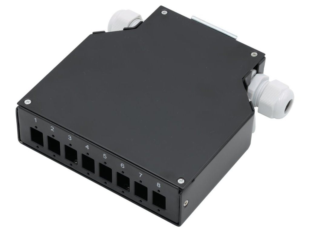 XtendLan ORSDIN-408-SCSBMalý kovový rozvaděč pro upevnění na DIN lištu. Dovoluje instalovat 8× SC simplex adaptér. Robustní kovové provedení, 4× vstup (2× zaslepený + 2× PG11). Kabel není nutno provlékat, lze i jen založit.