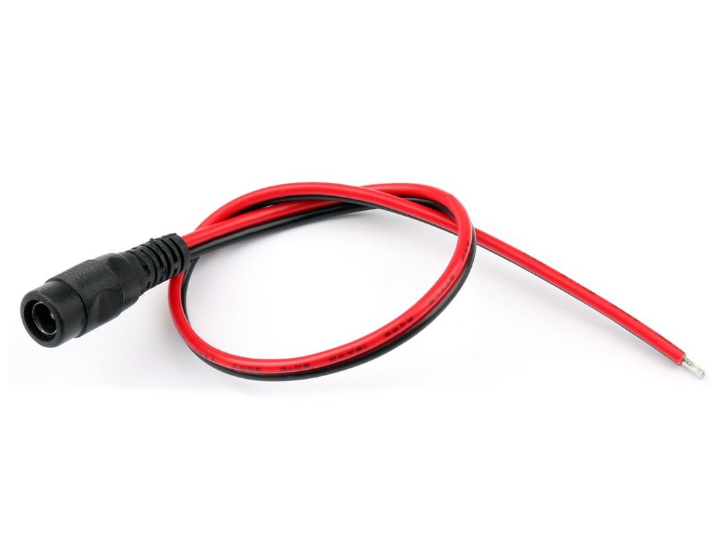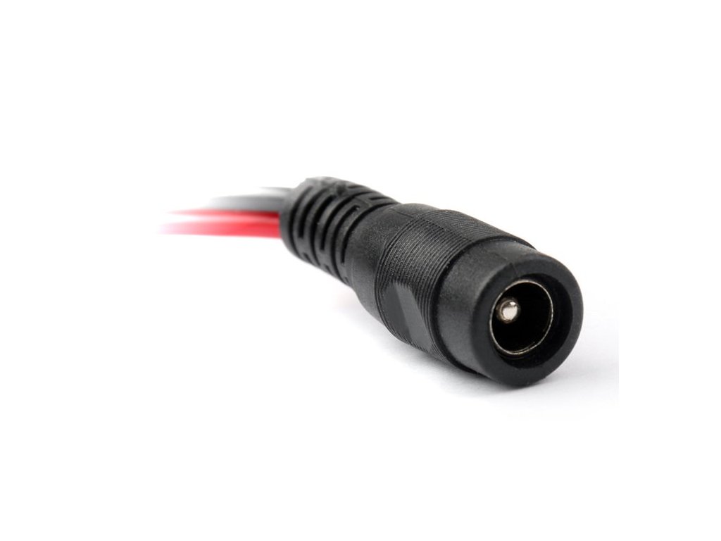 Průměr jacku 2,1 mm samice je vhodný pro drtivou většinu zdrojů. Barevně značená polarita na kabelu.