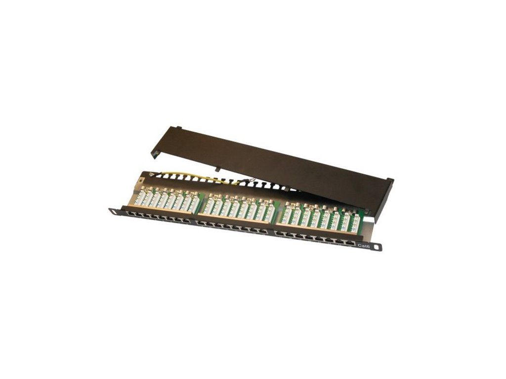 XtendLan Patch panel 19", 0.5U, 24 portů, Cat6, stíněný, černý