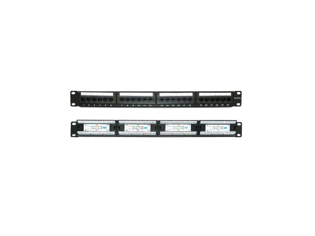 XtendLan PP19-24C5EU2Propojovací panel, 24 portů RJ-45, narážecí kontakty duálně normal/LSA, nestíněná, CAT5E. Kontakty jsou na svorkovnici odlišeny barvami podle typu zapojení, a to buď podle T568A, nebo T568B nebo číselně značeny.