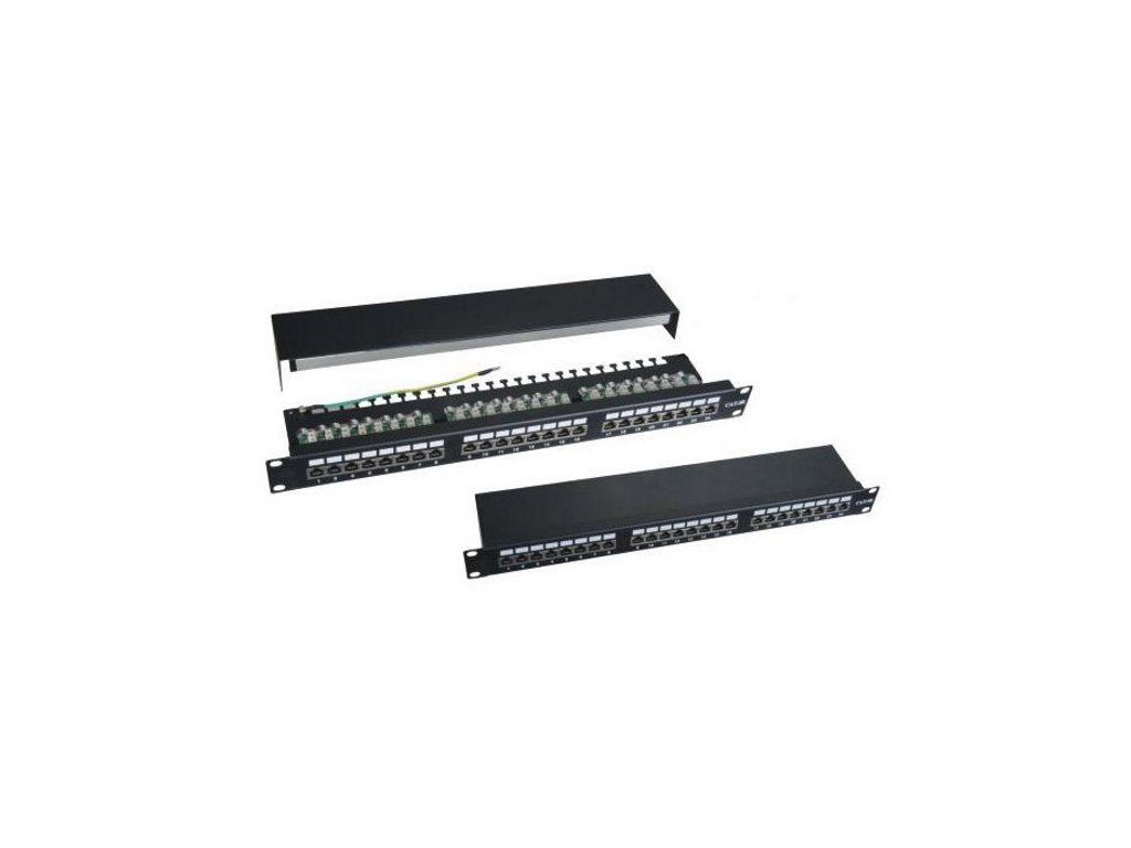 XtendLan Patch panel 19", 24 portů, Cat6, stíněný, vyvazovací úchyty, černý