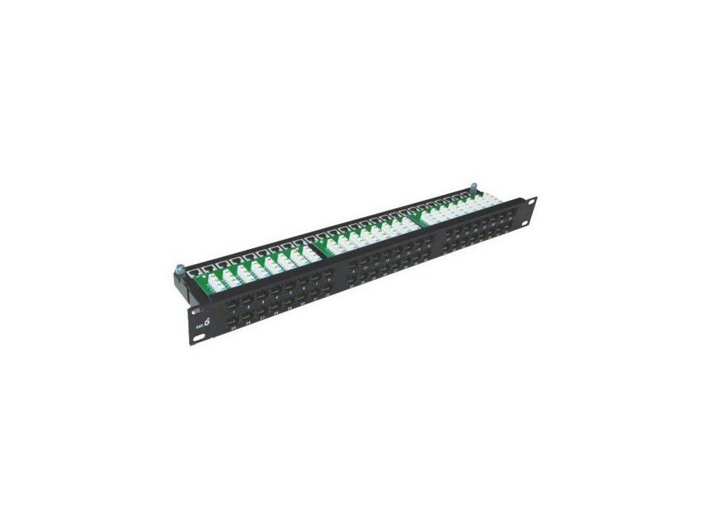 XtendLan PP19-48C6UPropojovací panel, 48 portů RJ-45, Cat6, nestíněný, narážecí kontakty LSA. Kontakty jsou na svorkovnici odlišeny barvami podle typu zapojení, a to buď podle T568A, nebo T568B nebo číselně značeny.