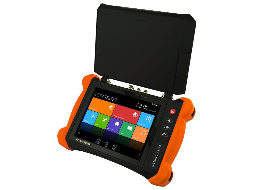 Tester kamerových systémů pro všechny moderní HD analogové a digitální kamerové systémy. Je zvláště vhodný pro práci v terénu, kdy je třeba odstraňovat závady na kamerových rozvodech provedených pomocí koaxiální a UTP kabeláže. Velmi usnadňuje instalaci a nastavování PTZ kamer - různé protokoly, nastavení rychlosti, otáčení, zoom, ostření, automatický sken, ovládání menu kamer, ovládání aux portů. Tester může být i jen vložen do trasy - má vstup i výstup videosignálu pro všechny systémy. Má rovněž 12 V (2 A) DC výstup pro lokální napájení kamery, 5 V (2 A) DC výstup na USB konektoru a pracuje i jako PoE zdroj (injektor). Šikovná je i možnost pracovat jako malý monitor, například pro připojení na místní DVR.