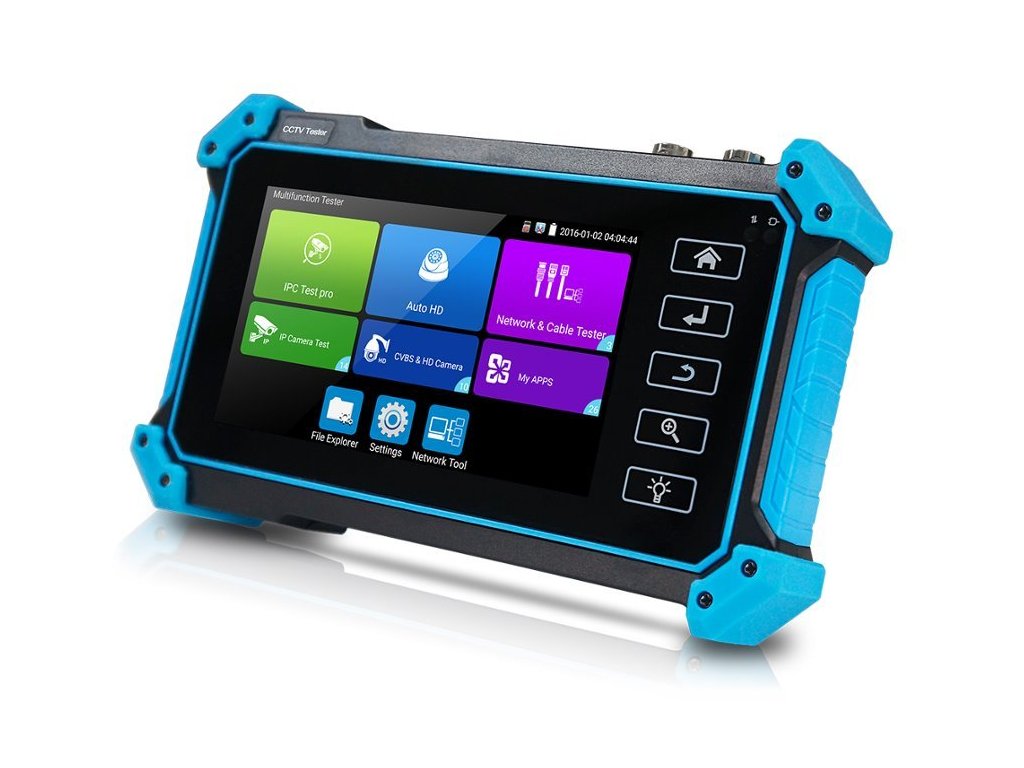 Tester je velice vhodný pro práci v terénu díky výkonným bateriím s dlouhou výdrží. Pro pohodlné ovládání je vybaven 5" barevným dotykovým IPS displejem s rozlišením 1920 x 1080 obrazových bodů. Vedle displeje se nachází pro pohodlné PTZ ovládání tlačítka, která urychlí práci při testech. Přítomná Wi-Fi dokáže sdílet vytvářet Wi-Fi hotspot s možností testu Wi-Fi kamer.