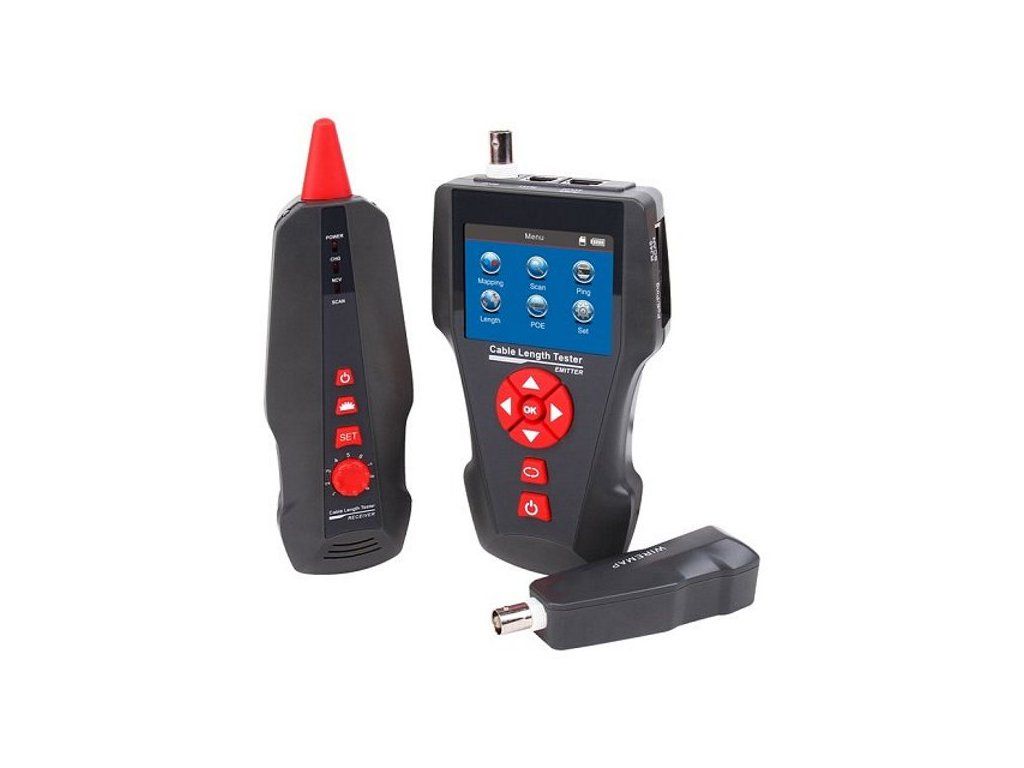XtendLan Tester STP+PSTN+coax+USB, LCD displej, měření délky vedení, test PoE a PING, sonda