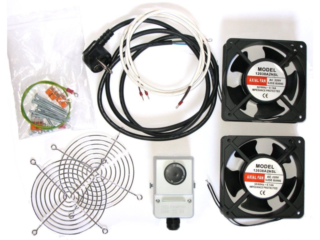 XtendLan Ventilace pro nástěnné rozvaděče, termostat, 2 ventilátory,napáj.kabel, spoj. materiál