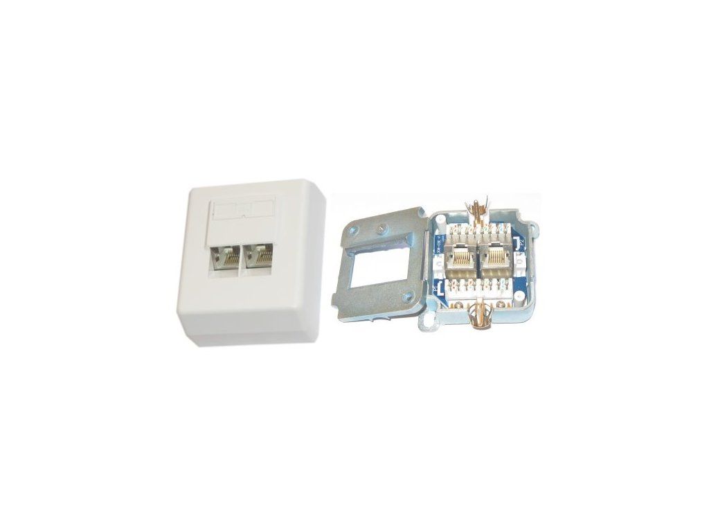 XtendLan Zásuvka 2x RJ45 stíněná, CAT 5e, na zeď, šikmý vývod, narážecí Krone/110