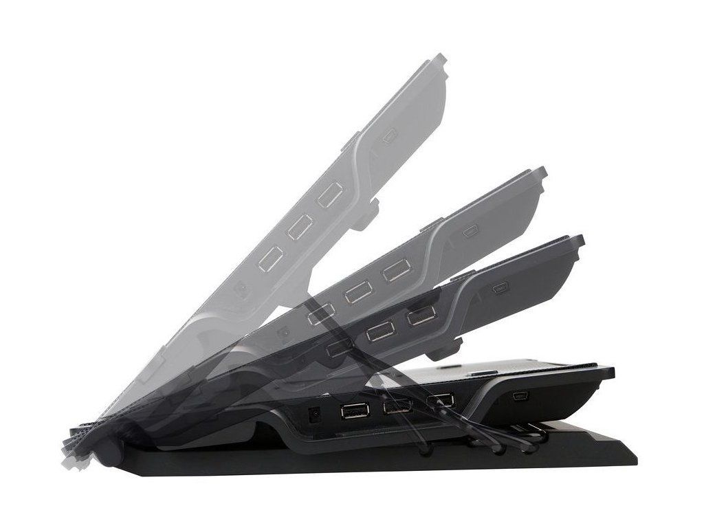 ZALMAN ZM-NS2000Praktická podložka s nastavitelným úhlem sklonu nabízí výkonné a tiché chlazení vašeho notebooku. Disponuje ventilátorem o velikosti 200 mm a optimalizovanou strukturou děrování. Zajisté potěší také tři USB porty pro připojení dalšího příslušenství.