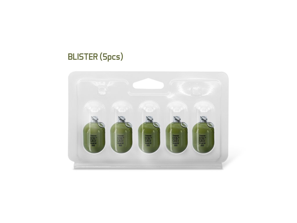 Ekologické zátěže jsou vzhledem k ochraně životního prostředí ve světě rybolovu vyhledávány stále více. Právě proto jsme uvedli do nabídky model zátěže, která je provedena z oceli a umožní vám lov i na revírech či rybářských závodech, kde je zákaz používání olova. Válcovitý tvar zátěže Delphin EcoCAST ji předurčuje zejména k lovu nahazováním na stojatých vodních plochách. Pro pohodlné upevňování do závěsného klipu je zátěž vybavena obratlíkem s větším očkem. Velkou výhodou oceli oproti olovu je i její magnetičnost, což oceníte v případě odpadnutí zátěže, kdy ji můžete pomocí magnetu opětovně vytáhnout z vody. Zelené barevné provedení dokonale kamufluje zátěž na dně, díky čemuž nevyvolává zvýšenou pozornost u opatrných ryb. Široká škála hmotností navíc umožní přizpůsobit gramáž aktuálním podmínkám na vašem lovném místě.Doplňkové parametry