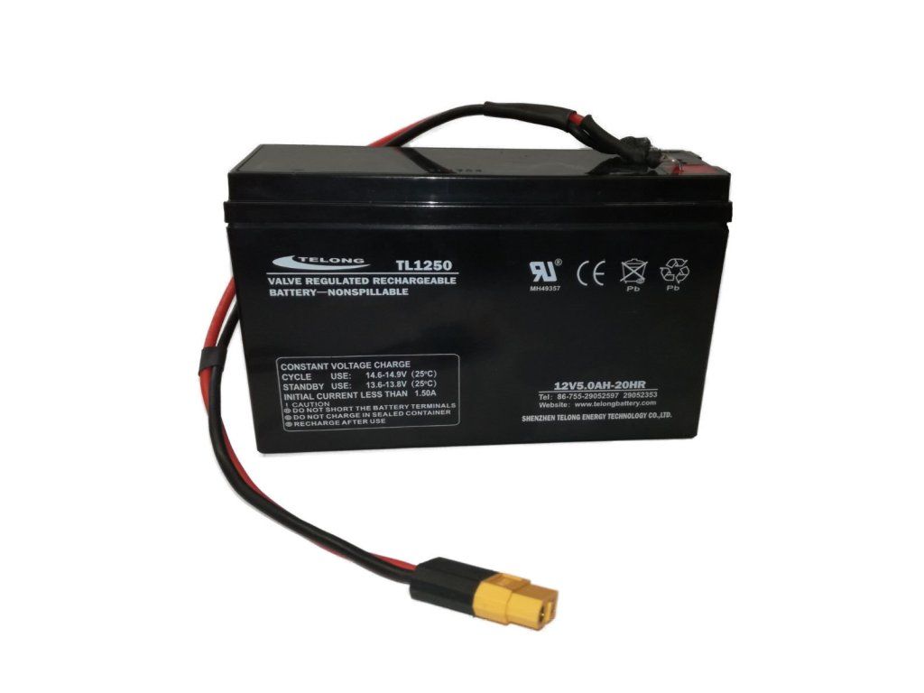 Dvě olověné baterie (2 x 5Ah). Tyto baterie lze dobíjet bez vyjmutí pomocí dodávaného adaptéru nebo vyjmuté pomocí redukce. Při plném vytížení v nejnepříznivějších podmínkách vydrží baterie déle jak 150 min. V běžných podmínkách v závislosti na zátěži pak mnohem déle.