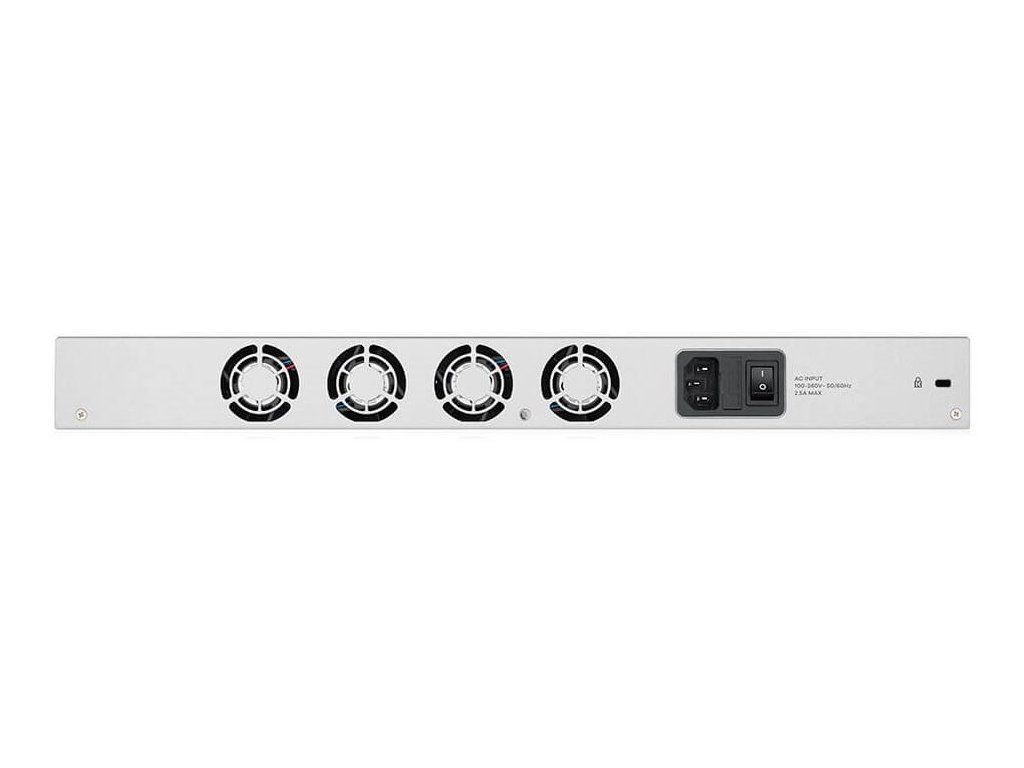 Porty: 12× GbE RJ-45 (konfigurovatelné), 2× SFP (konfigurovatelné), 2× USB 3.0, 1× konzolový port (DB9 - konzole)