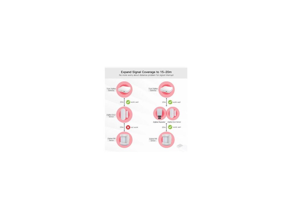 - Účinně prodlouží dosah ZigBee signálu o 15 až 20 metrů